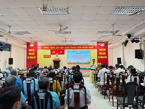 Cán bộ Công đoàn phường Vĩnh Hội và phường Xóm Chiếu học tập Nghị quyết Đại hội Công đoàn TP.HCM