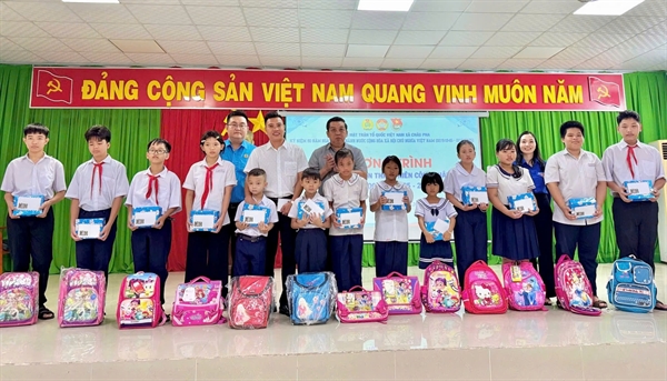Sáng 23/8, Công đoàn xã Châu Pha phối hợp cùng Đoàn Thanh niên xã tổ chức chương trình trao 20 suất quà cho con em thanh niên công nhân có hoàn cảnh khó khăn, nhân dịp khai giảng năm học mới 2025 - 2026. Mỗi suất quà trị giá 600.000 đồng, gồm: 1 balo, 10 quyển tập và 200.000 đồng tiền mặt.